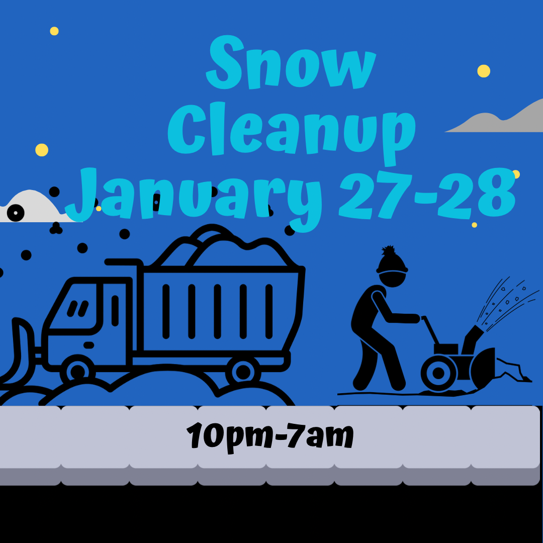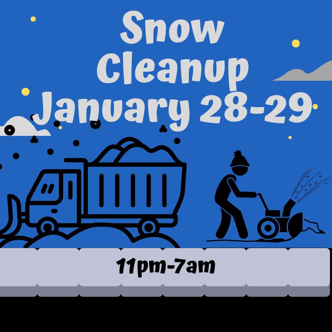 Snow removal will begin this evening at 10pm! Crews will be working throughout the downtown area and school zones from 10pm-7am.